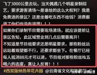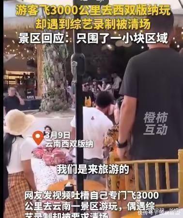 3月8日,本该悠闲惬意的云南西双版纳热带花卉园,却因为一档综艺节目的录制,彻底变成了冲突现场。游客花钱游玩、消费,却被工作人员粗暴驱赶,事件迅速发酵冲上热搜,全网一片声讨。 一、游客消费88元刚坐下就被赶,工作人员态度嚣张引众怒 多位游客爆料,自己千里迢迢飞到西双版纳,买了景区门票,又在园区餐厅消费了88元最低消费,饭还没吃几口,就被《音你而来3》节目组的黑衣工作人员强行要求清场离场。 更过分的是,就连远远观望的粉丝,都被工作人员吆五喝六,甚至被强制要求必须坐下。游客上前理论,对方不仅不听解释,还态度强硬、指指点点,甚至反过来要求游客“换位思考,体谅艺人拍摄”。 游客当场怒怼:我们飞了3000公里,花钱买票、花钱消费,我们的时间和金钱就不是钱吗?现场几十名游客纷纷证实,遭遇完全一样,并非个例。 二、口碑综艺彻底翻车,9位明星全程沉默旁观惹争议 《音你而来》前两季凭借“旅行+音乐”的治愈风格,积累了大量好评,本是一手好牌。没想到第三季刚录制就彻底翻车,节目组嘴上喊着接地气、不搞特权,实际上却把公共景区当成了私人片场。 最让网友寒心的是,现场一共有9位明星嘉宾,就坐在不远处,眼睁睁看着工作人员粗暴对待游客,全程无一人上前制止,无一人表态。 三、景区回应避重就轻,无道歉无解释,网友火气更旺 舆论发酵一天后,3月9日景区终于发布回应。可这份回应不仅没有平息怒火,反而彻底点燃了网友情绪。 景区在声明中只强调录制区域小、不影响游览、录制已结束,通篇没有道歉、没有解释、没有安抚游客,完全回避了“临时清场、驱赶游客、工作人员态度恶劣”的核心问题。 网友怒批:公共景区不是明星特权场,不提前通知、不尊重消费者,花钱买气受,谁还愿意再来?